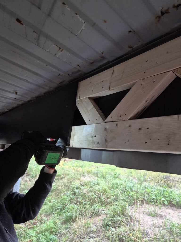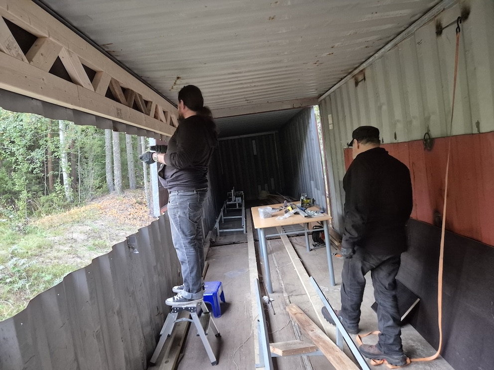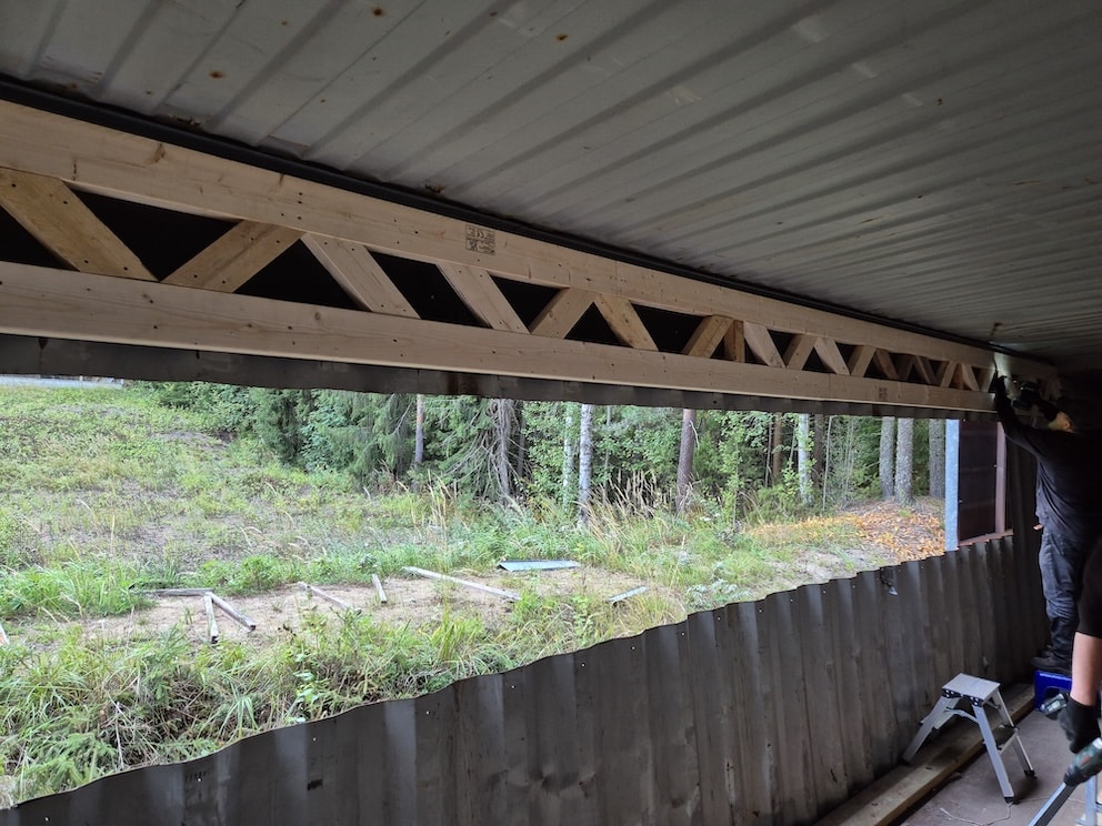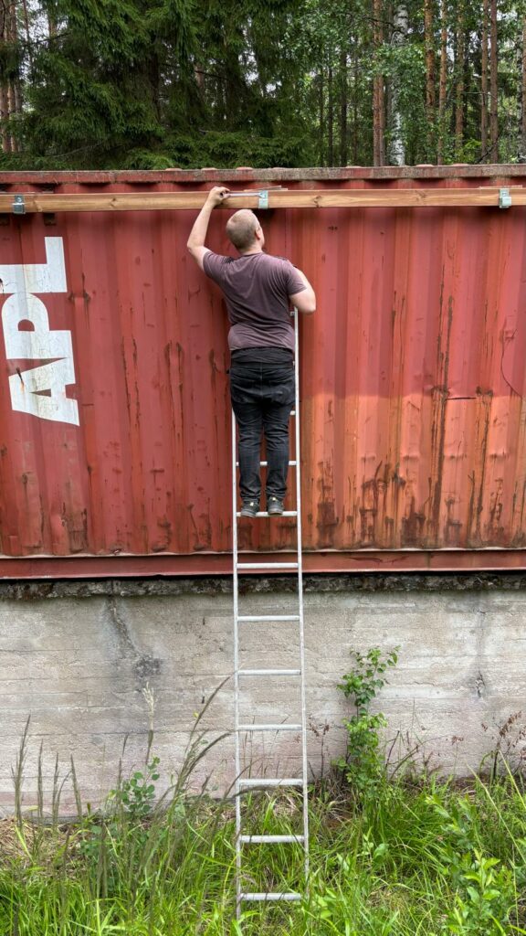 Kesän 2025 aikana hanketta on edistetty rakentamalla liikkuvan radan perustuksia hankittuihin kontteihin ja leikkaamalla niiden kylkeen ampuma-aukko ja aukon peitoksi liukuovet. Heti aukon leikkauksen yhteydessä havaittiin myös, että aukkoseinää tarvitsee vahvistaa / jäykistää ennen talven lumikuormaa, niinpä aukon yläpuolelle tehtiin vahvikepalkki lankuista ja filmivanerista.